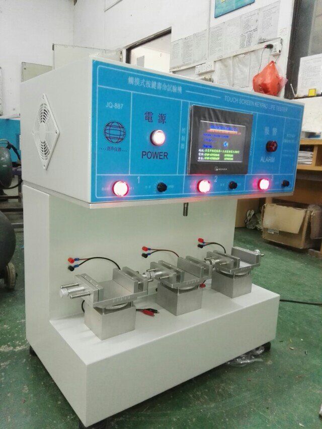 本機機械結(jié)構(gòu):采用臺灣變頻調(diào)速電機凸輪結(jié)構(gòu)配合日本THK精密線性滑軌完成線性上下動作,電器控制部分:采用臺灣威倫觸摸屏+臺灣臺達(dá)控制器(PLC).可對計算機、手機、記事本、鍵盤等小型消費電子產(chǎn)品做壽命測試及開關(guān)好壞測試。
